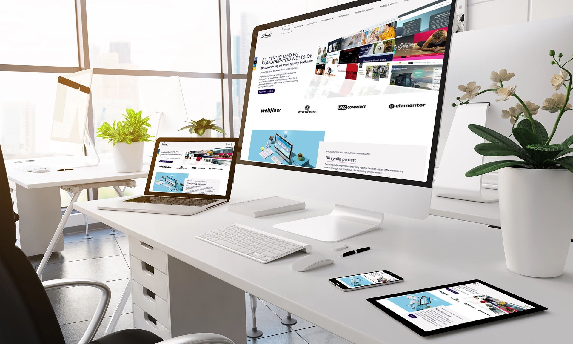 Alle hjemmesider levert fra oss er bygget med Webflow eller verdens mest brukte publiseringsverktøy WordPress,